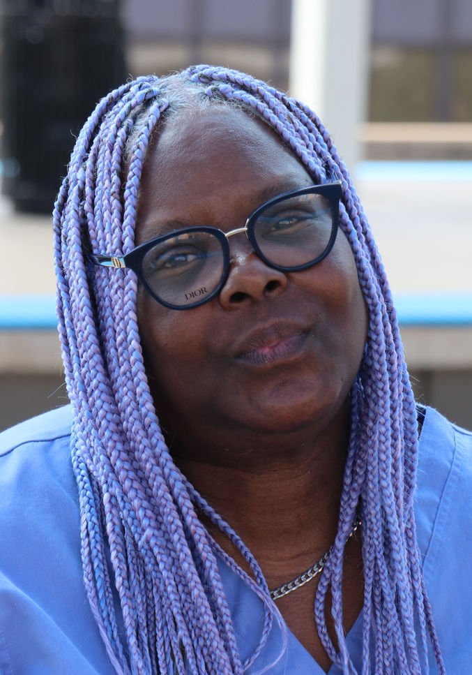 Darlene, with her fresh and vibrant blue braids from a recent salon visit, observed tenacious pigeons at CTA stations, undeterred by anti-bird spikes, as they curiously explored the cracks of a blue roof.